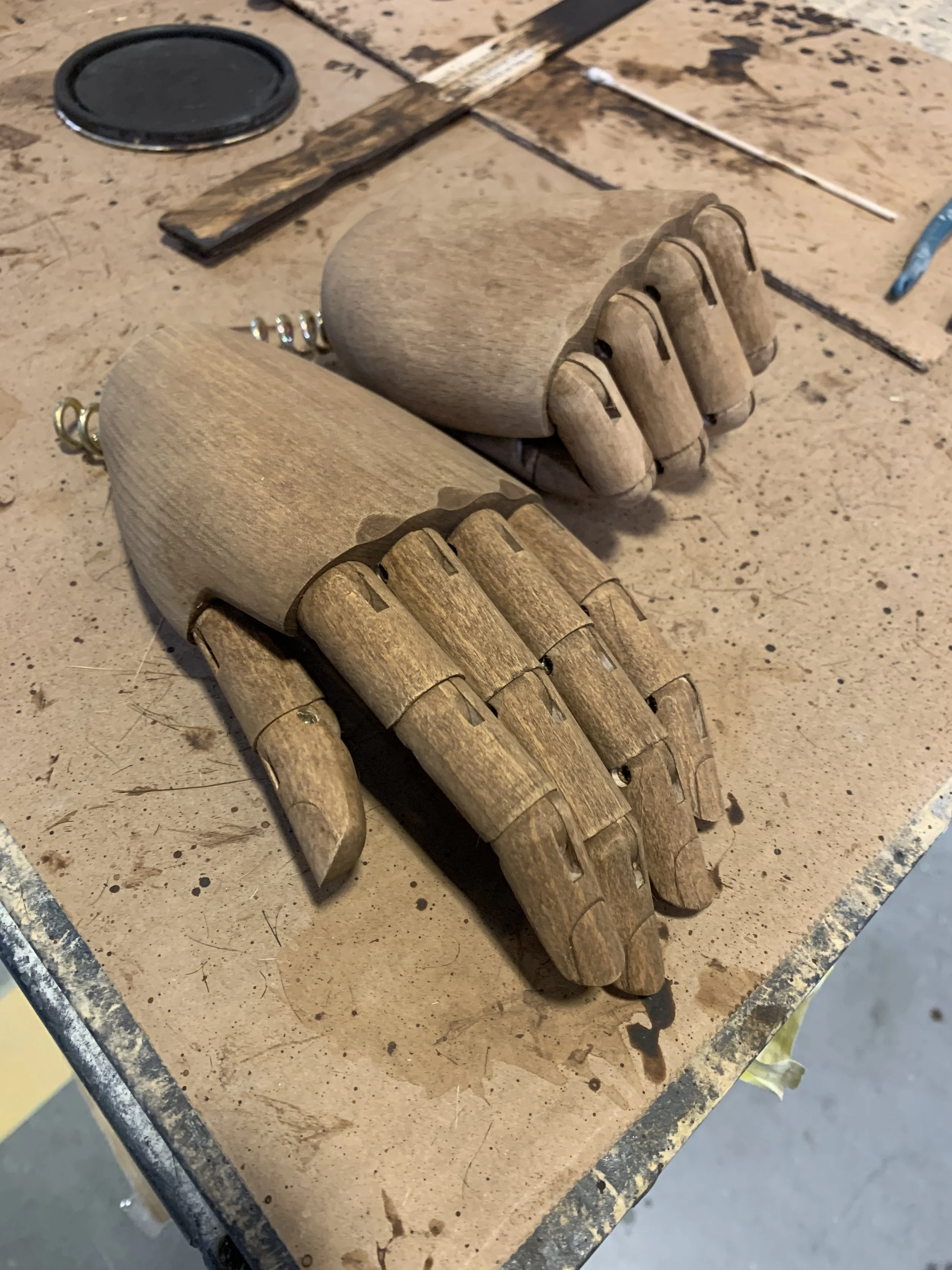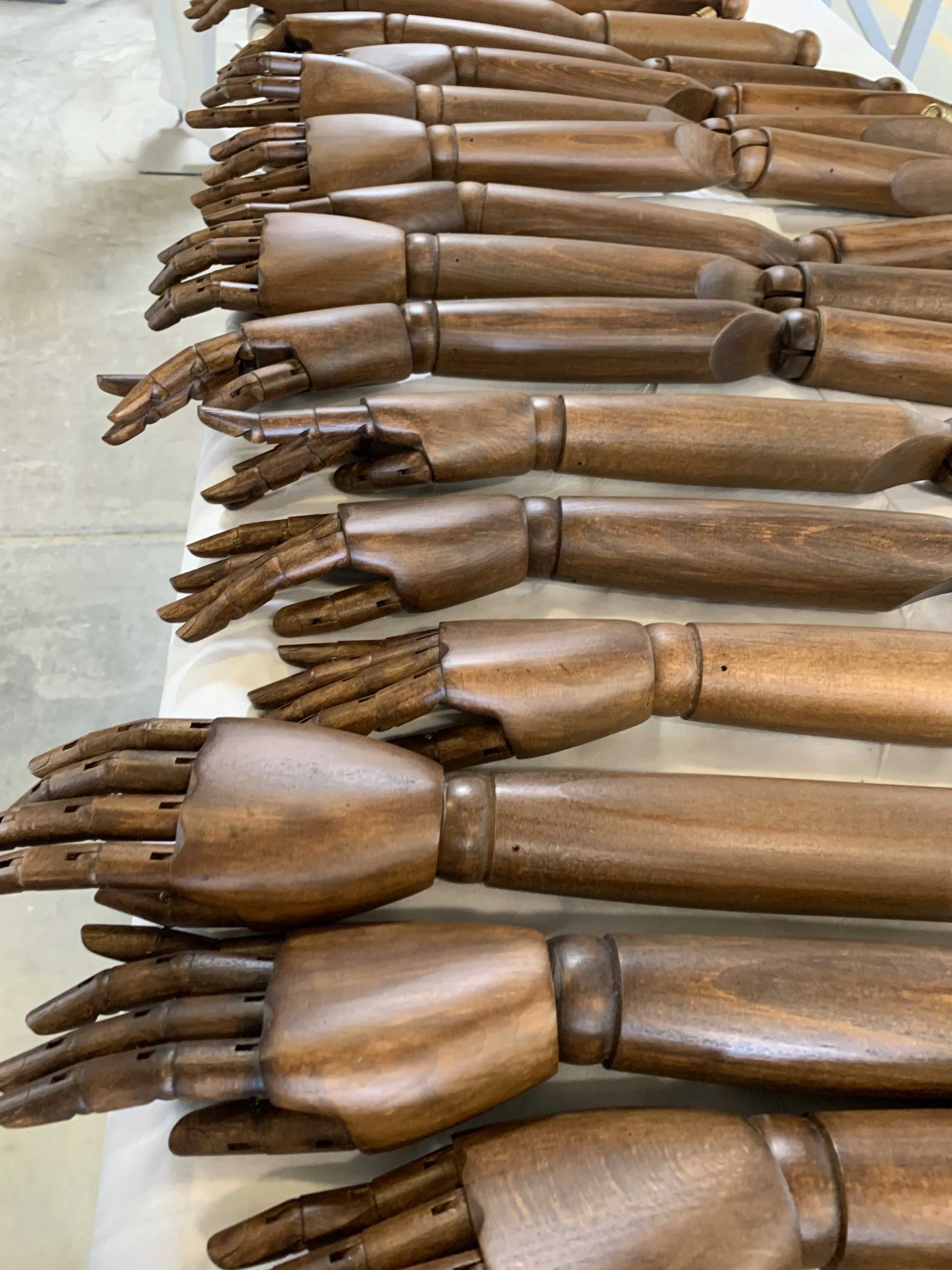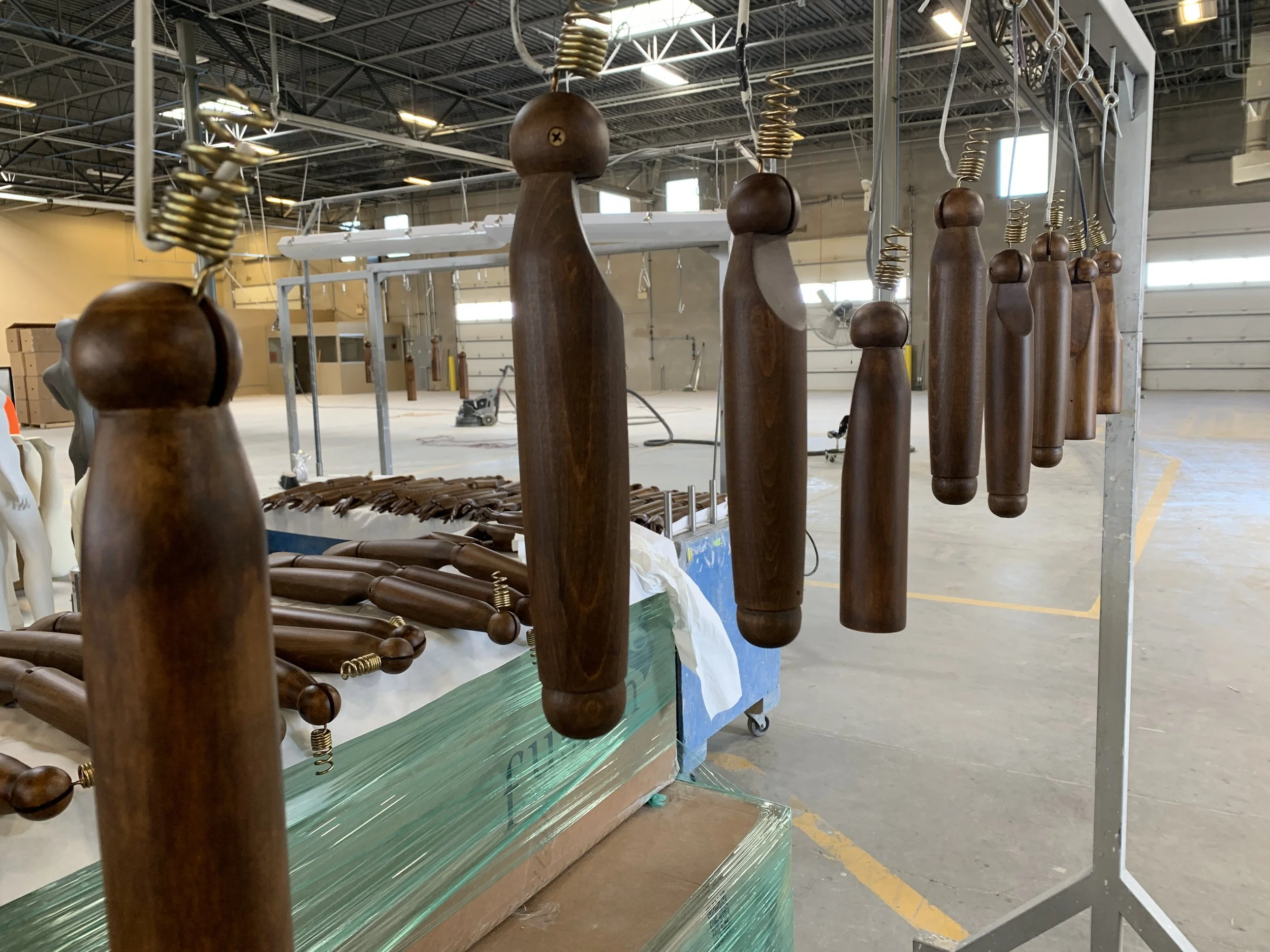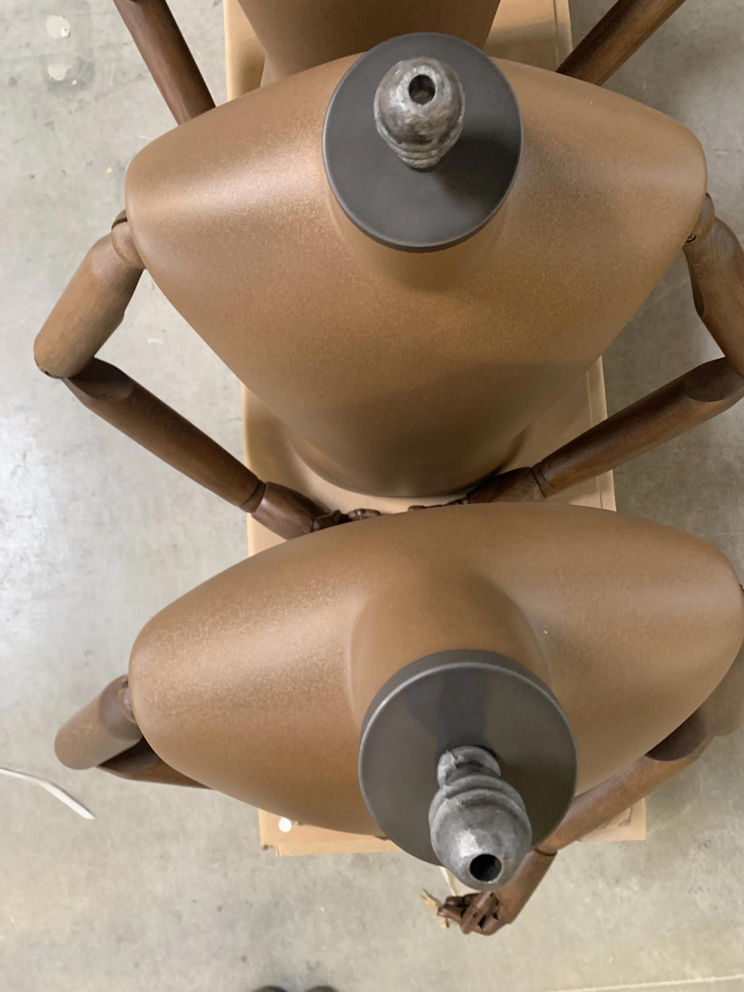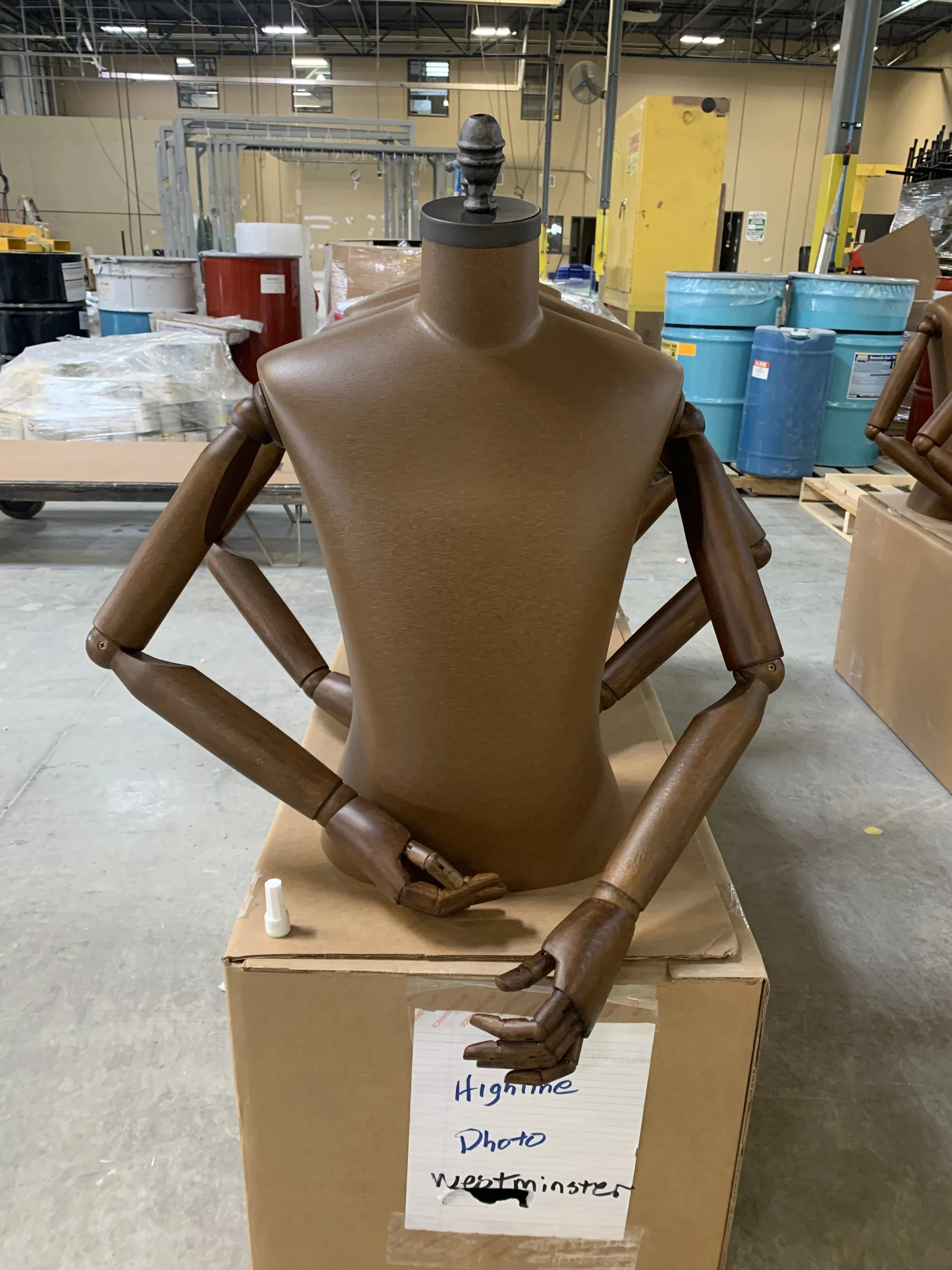 This project required a concept of leather and wood. Two bust forms were created: a navy and a leather brown. Combined with the hand-applied faux aging technique, the combination met the brief. All samples and forms were hand applied and inspected for details to mimic texture and depth. The color matching, hand applied deco, and assembly was the most cost-effective solution to meet the brief.