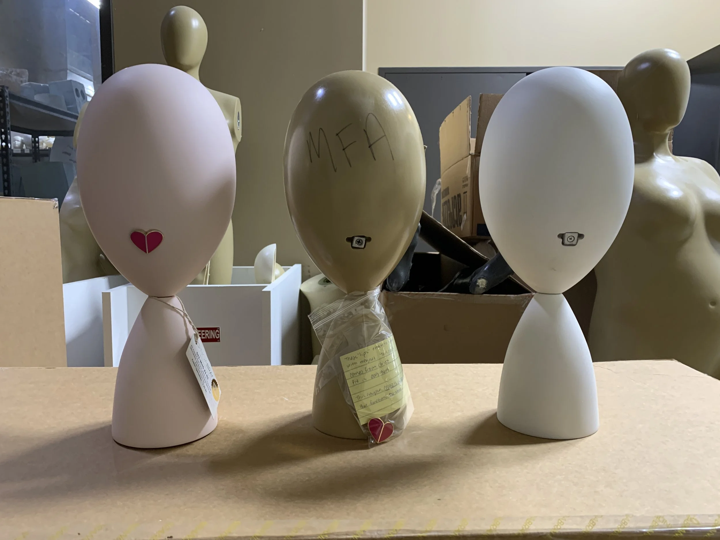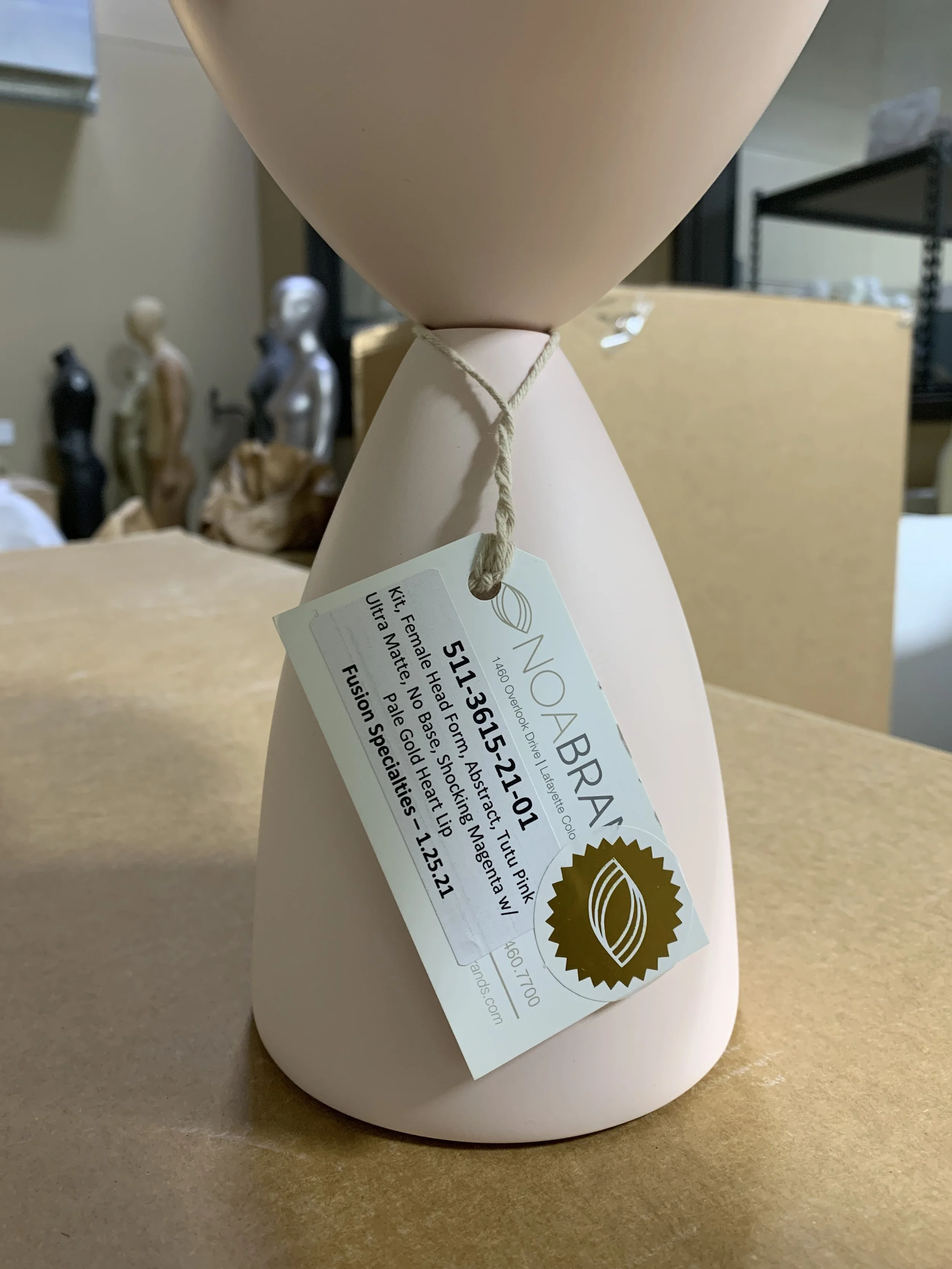 Kate Spade custom shaped hat-form. The project objective was to locate a velvet/suede fabric color matched to the brand’s iconic pink color. The fabric pattern construction needed to be smoothly and snuggly fit over the unorthodox shaped head form. Another, less costly, polyurethane version was created and painted in a color matched “ultra matte” paint.