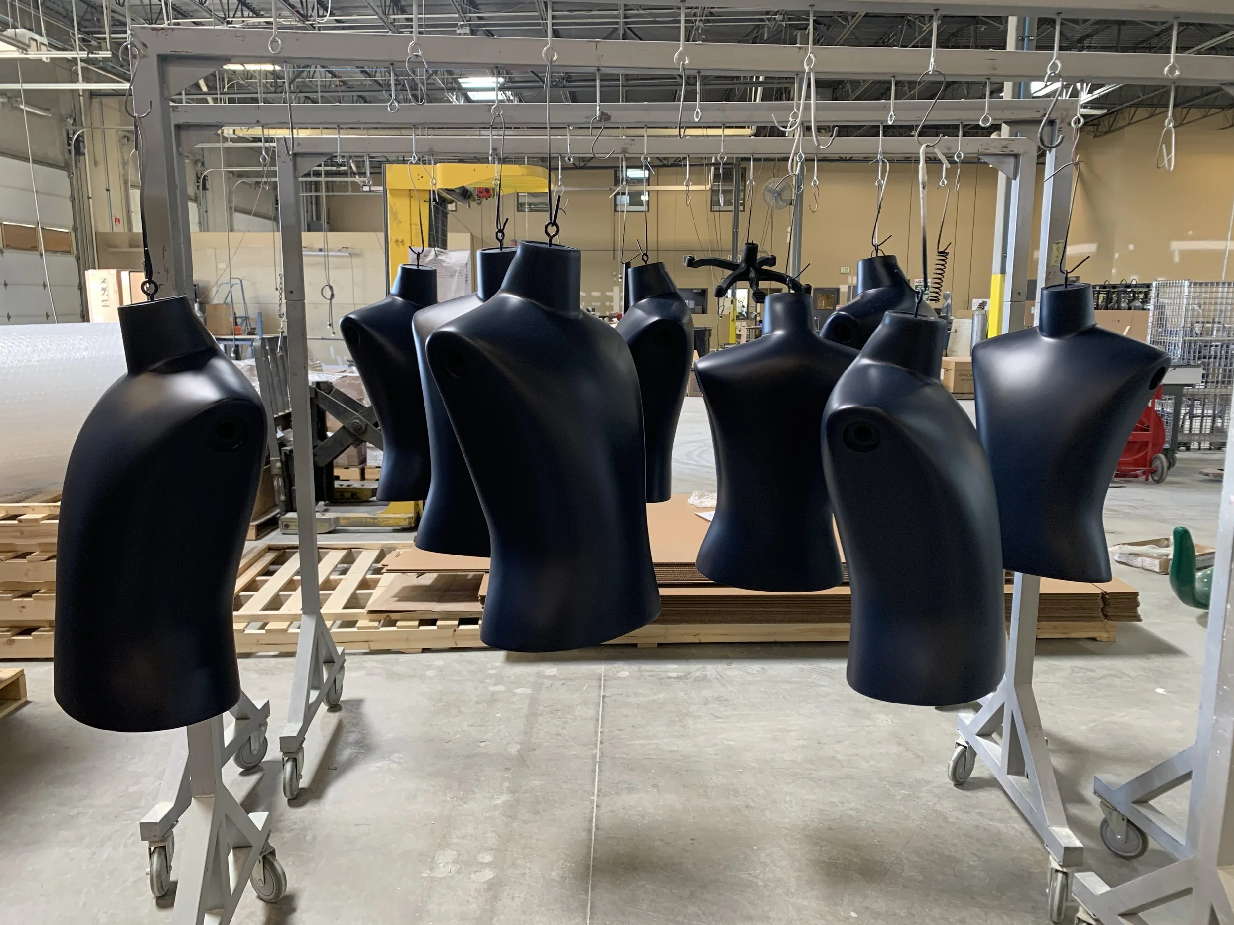 By mixing and layering color applications, speccing in-mold color, working with materials (polyurethane, fiberglass, and fabric covered foam mannequins); innumerable customizations were requested.