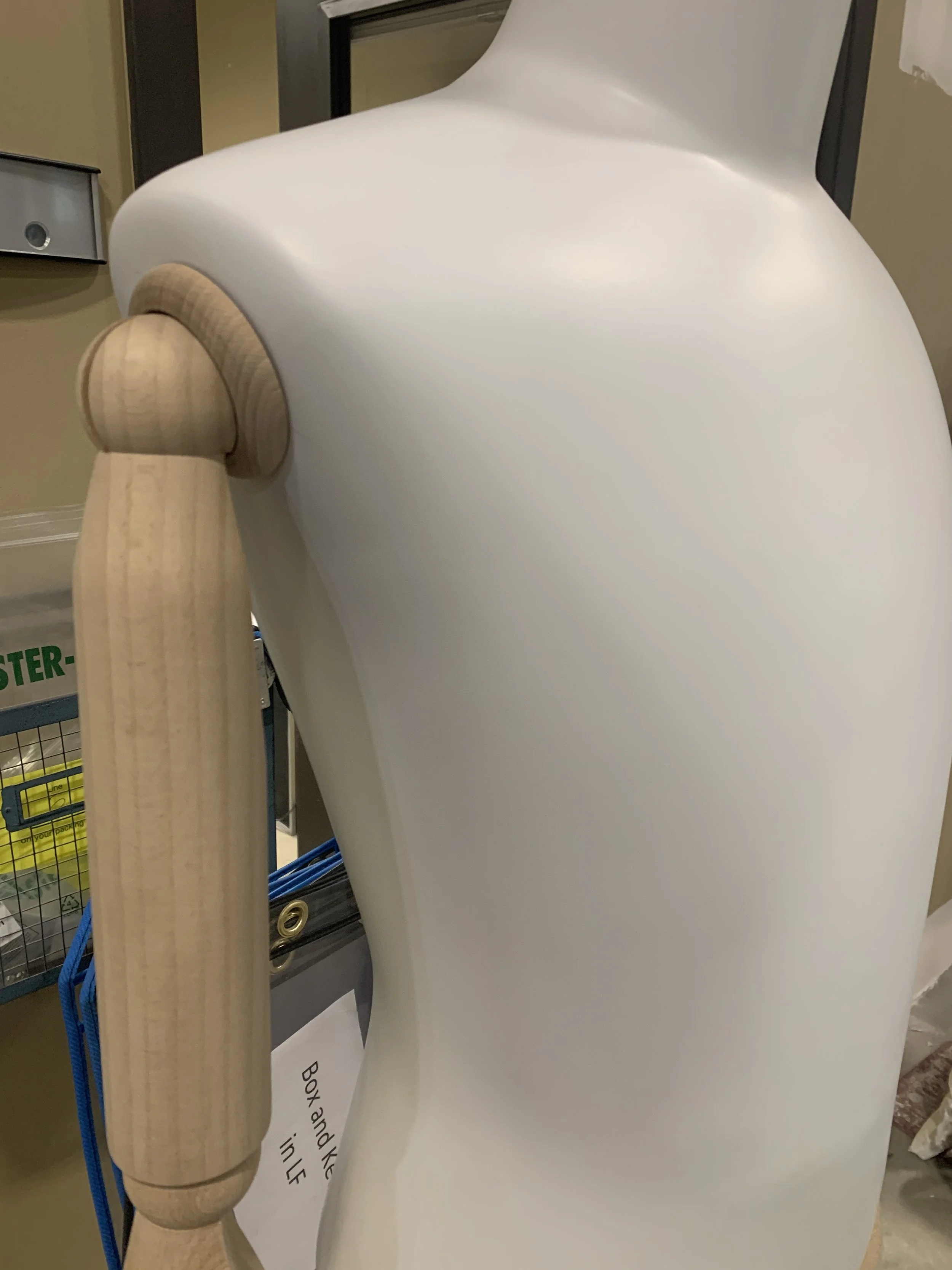 Nike x Nordstrom mixed media forms. Top half fabric covered head and bust combine with the bottom painted polyurethane leg form. The objective was to tonally color match between the fabric and the paint.