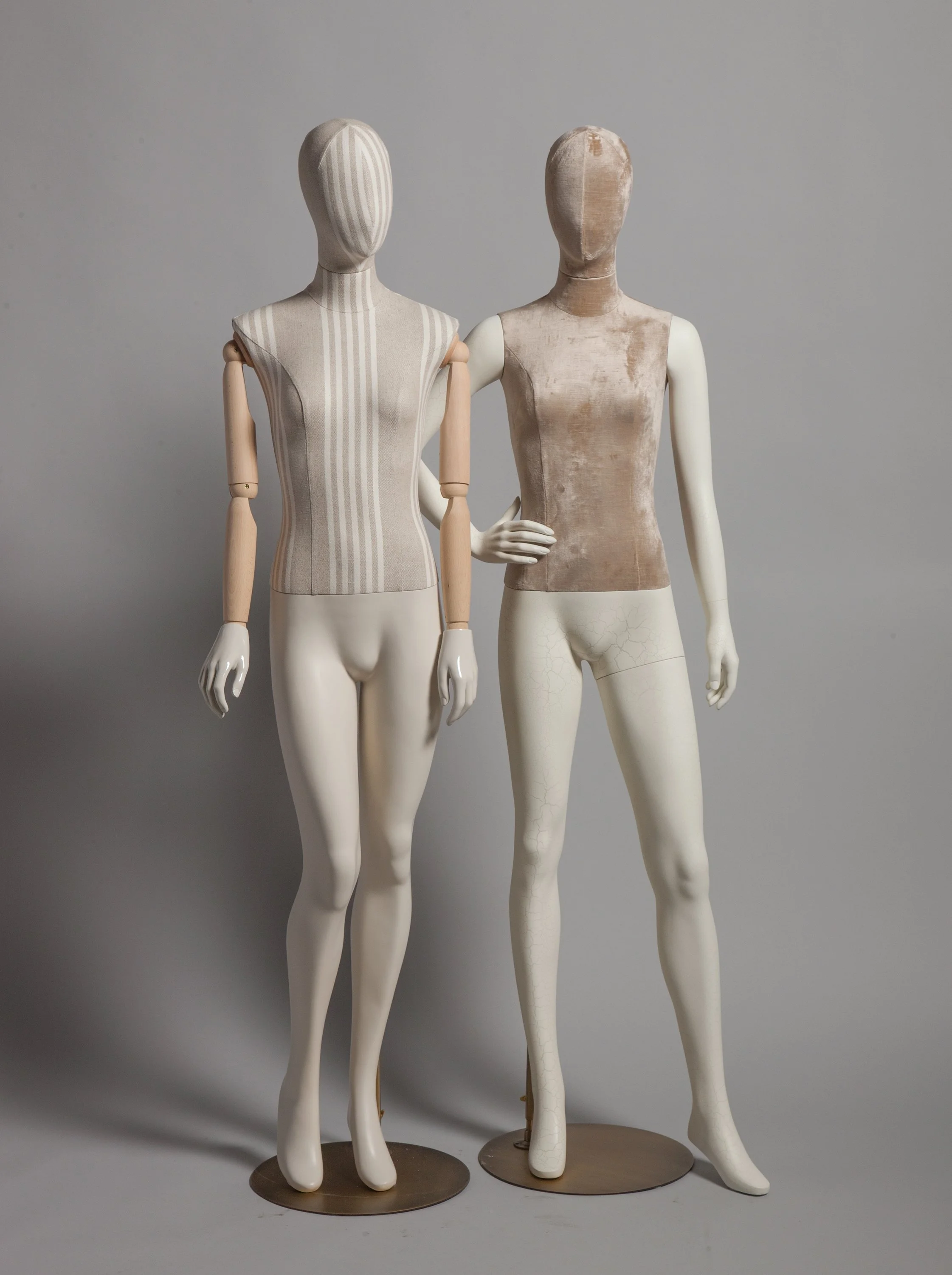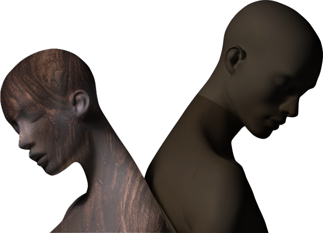 Custom finishes were chosen in this case study to provide an alternative retail merchandising opportunity. The subject of race and skin tone have re-entered the mannequin market and the state of current events. Clients, Adidas x Kohl’s, collaborated on an Adidas display that would reside inside Kohl’s box stores. The concept of shifting skin tones into tonally matched natural finishes (such as: stone, wood, etc) was introduced.